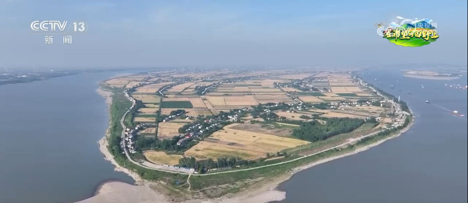 通过航拍镜头我们能够看到,江洲镇其实就是正在长江中的一座岛屿。由于这里的土质是典型的沙性土,再加上地势较高存不住水,不太适合种植水稻。从2015年起头,本地通过调整农业布局,实行小麦大面积种植和多种做物轮做的体例来进行农业出产。像现正在看到的这些小麦地,正在收割后,通过短暂间隙和平整地盘后,到6月就会轮做大豆、棉花等做物提高经济收益。