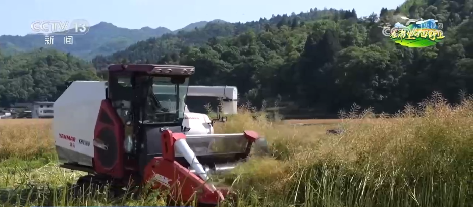 正在松桃县寨英镇的千亩“稻油”轮做,机械声轰鸣,合做社的结合收割机正正在开展油菜收割和秸秆破坏还田功课。据领会,该合做社设置装备摆设了耕、种、管、收一整套机械化设备,对全县多地油菜田开展社会化办事。